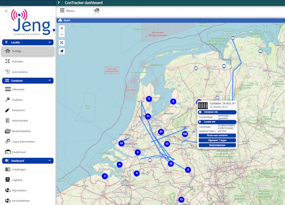 Dat vroeg om een oplossing. Nog datzelfde jaar ontwikkelde en introduceerde JENG de eerste pilotversie van de ConTracker. In de jaren daarna is er een 'schat aan ervaring' opgedaan met connectiviteit: van LoRaWAN via The Things Network en de landelijke LoRa-dekking van KPN, tot en met NB-IoT voor wereldwijde bereikbaarheid – alles is getest en toegepast.